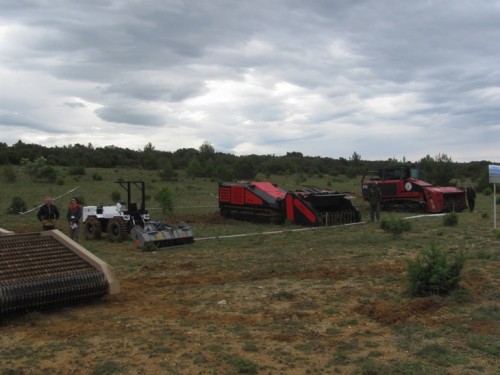 Thanks to LOCOSTRA agility (radious of curvature < 3m, achieved by double steering system) and FAE mulcher cutting capacities (grinding up to 200mm diameter trunks), LOCOSTRA plus FAE mulcher could be efficiently employed to selectively cut the vegetation before demining takes place, avoiding big trees protected by national law. Moreover, thanks to the low cost of deploying the machine (for short distances can be driven on board) and for running the machine (fuell consumption of 14 l/h when achieving a clearing rate of 1500m2/h), vegetation removal could be done on a large scale helping saving precious time.